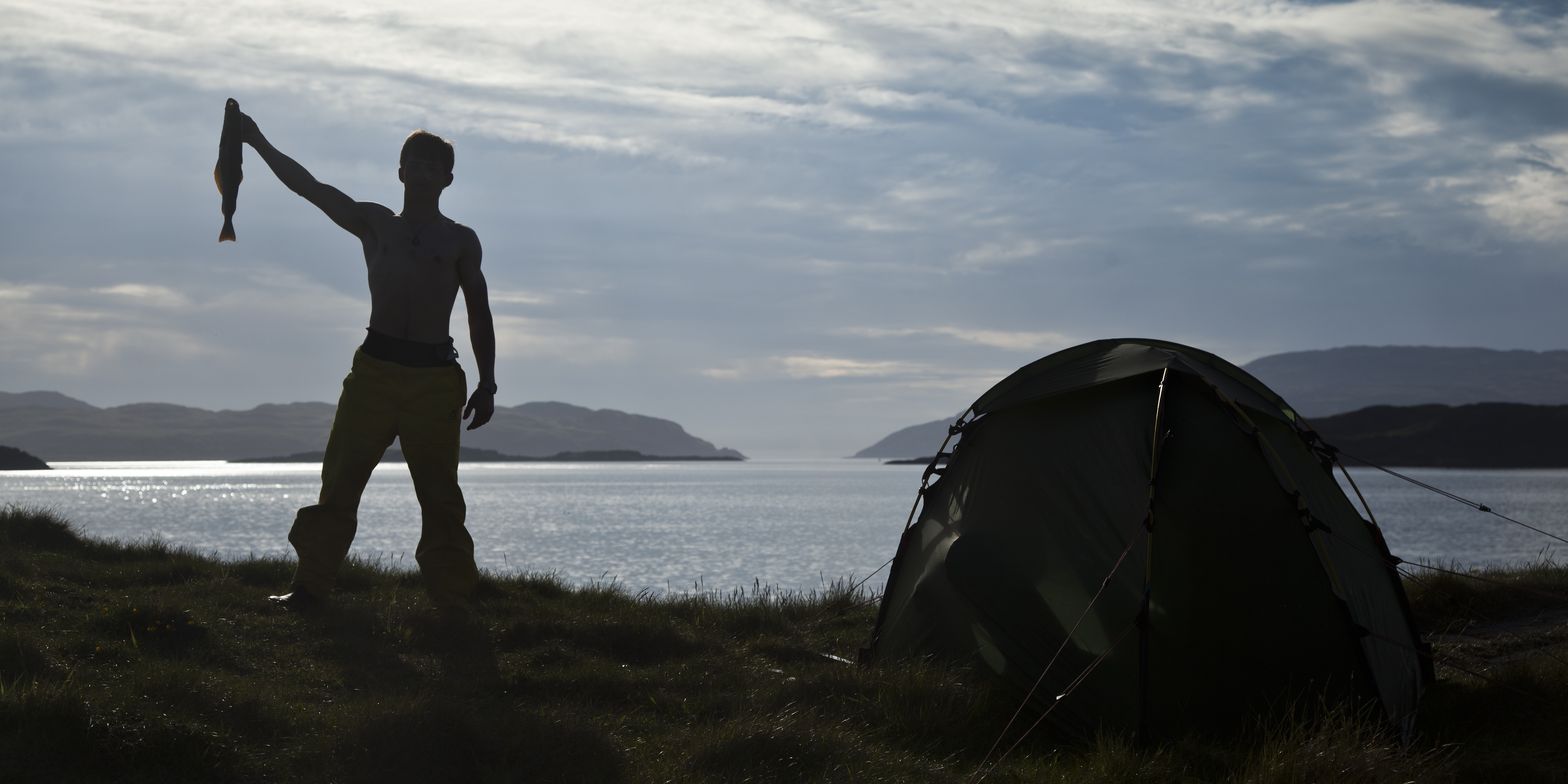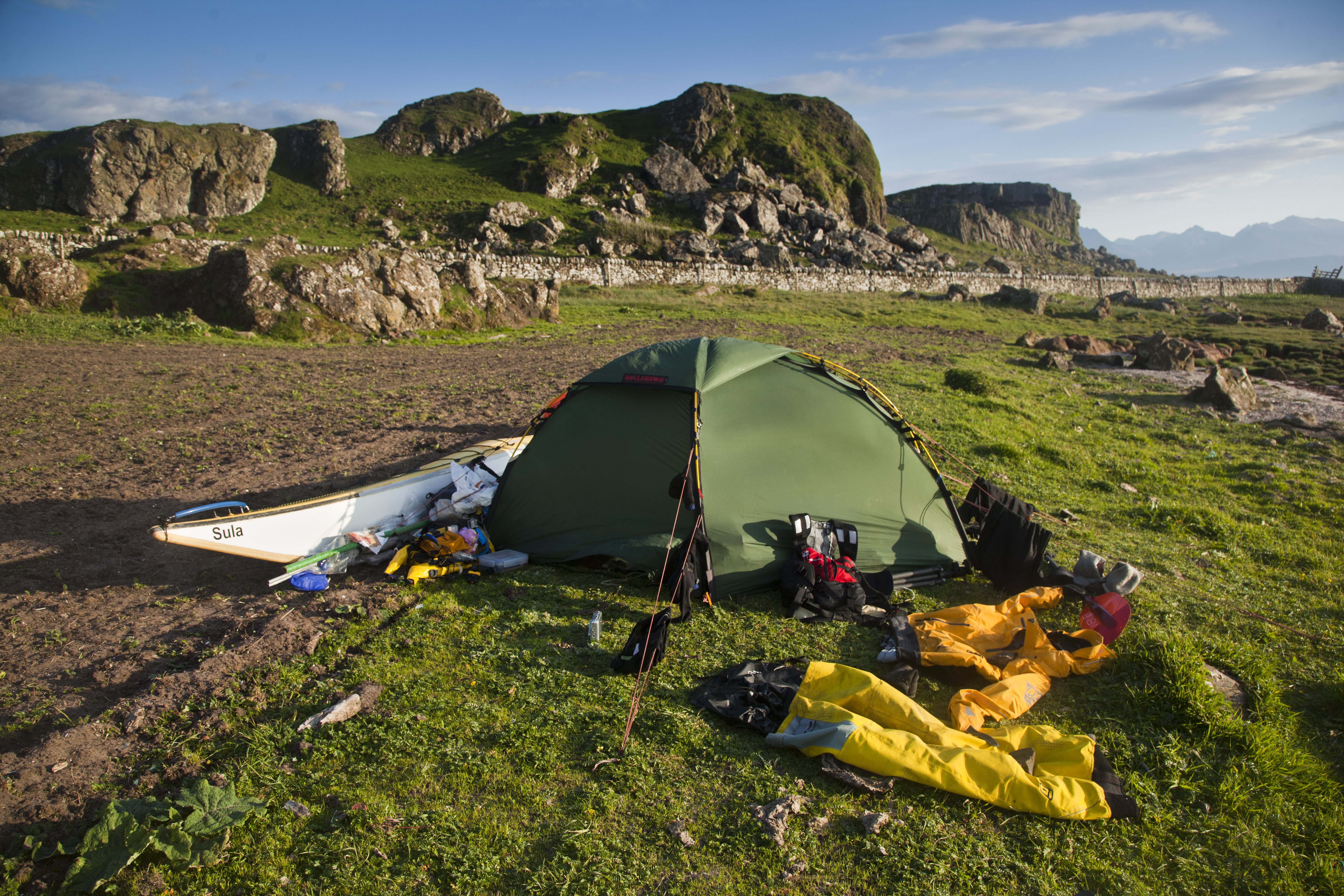 Dragging the boat over the seaweed to the nearest grass I emptied the tent and necessary food to set camp right on the top, I wanted to make the best of the light breeze and avoid the midges. It was a fantastic camp.