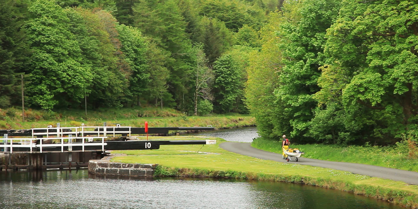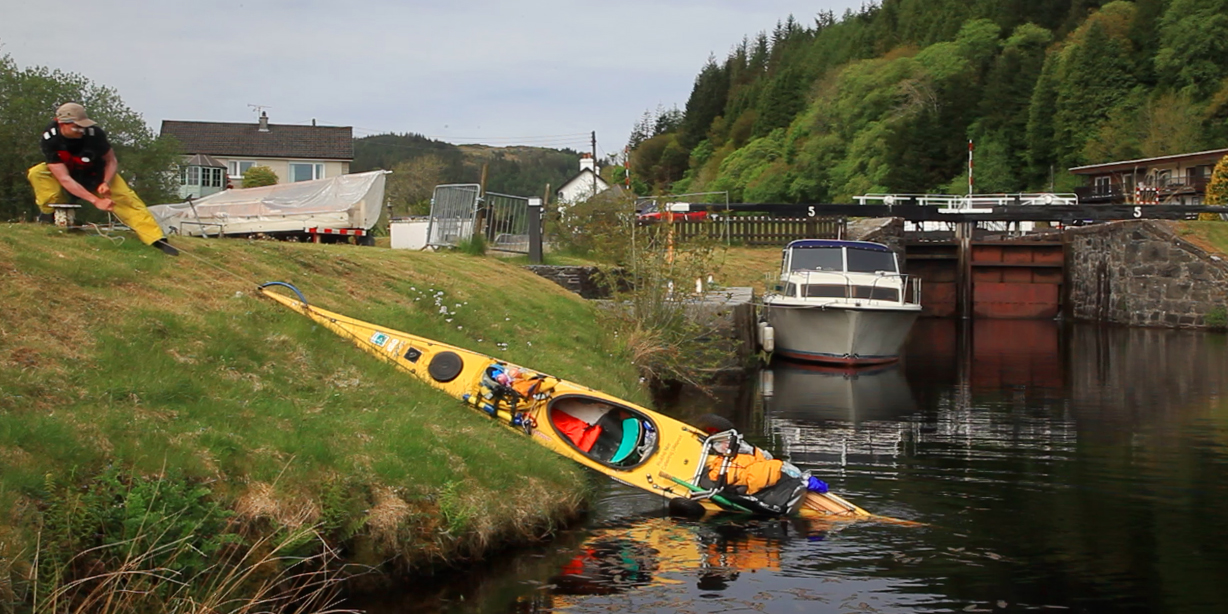 Ducking low to paddle under a low bridge beside the top lock I drifted out of the canal and into a small lochan. Here a low grassy slope at a gentle angle made extracting the boat easy, even without a pulley system. I sat on the deck eating crackers and cheese and waited for a passer by to help lift it onto the trailer.