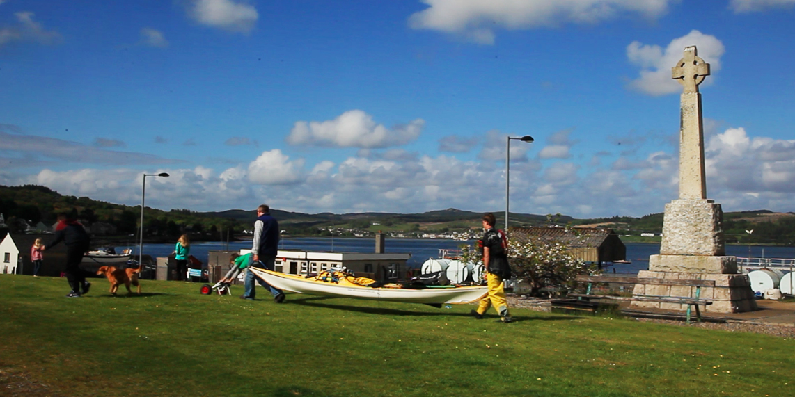 Grey slate rocks in the Seil sound contrasted sharply with the wonderful deep greens of trees, grass and moss. As I moved forward the loch narrowed to little more than the width of a river. All I had to do now was find Sue Fenton’s home. “The one with big windows and a kayak outside” I was amused to find almost all of the houses fit this description.