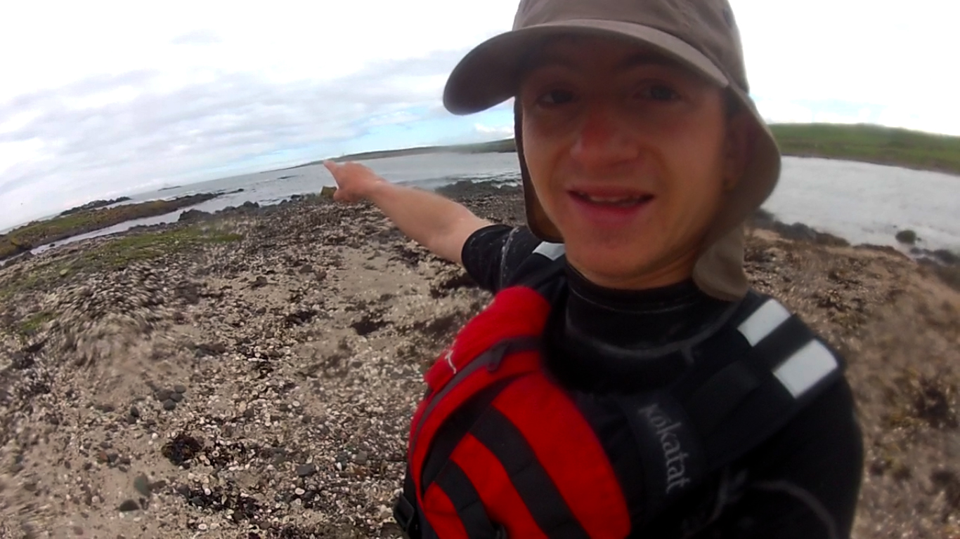 Grabbing the opportunity I briefly landed on a small island which offered a sheltered beach against the rolling swell. Quickly getting cold I stretched my legs and retrieved my VHF radio from a dry bag in anticipation of crossing the busy shipping lane of Loch Ryan.