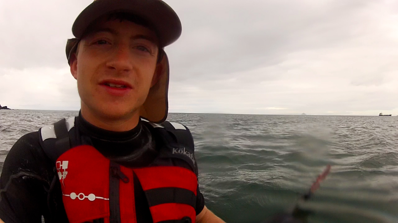 Rigging my radio onto the top deck I blared out radio 4 over the silent calm waters. An hours paddle later and 7km off the coast of Troon the radio was interrupted with a deafening roar, it seemed to shake the air around me giving me an incredible fright. Heart racing from the unexpected sound I gazed around, was that thunder?