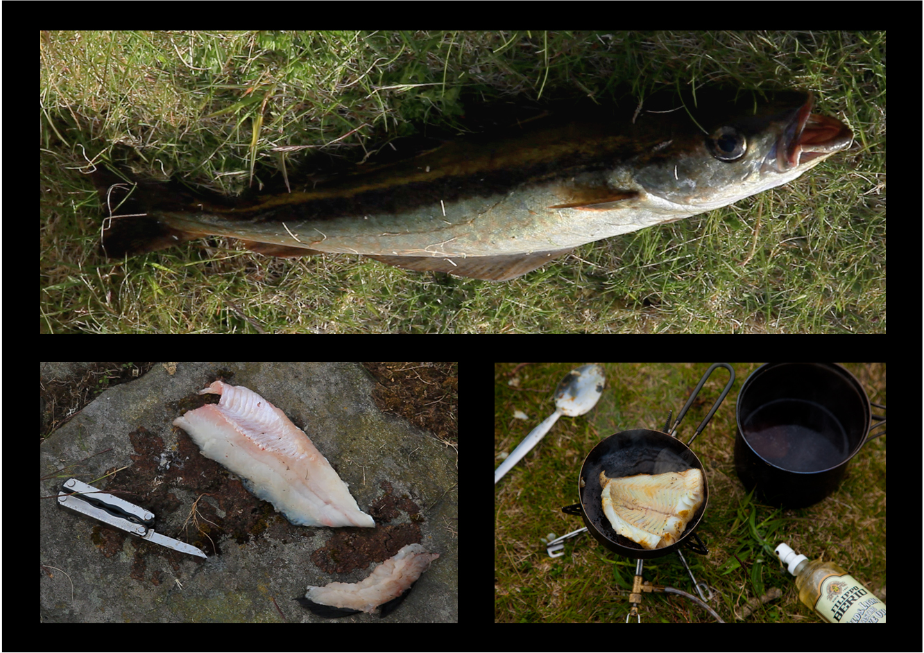 Fuelled on sprigs of heather I soon cooked the fillets to a tasty meal while simultaneously boiling tea, all with my little kelly kettle. It was all the more tasty knowing it was caught just below where I sat less than an hour before.