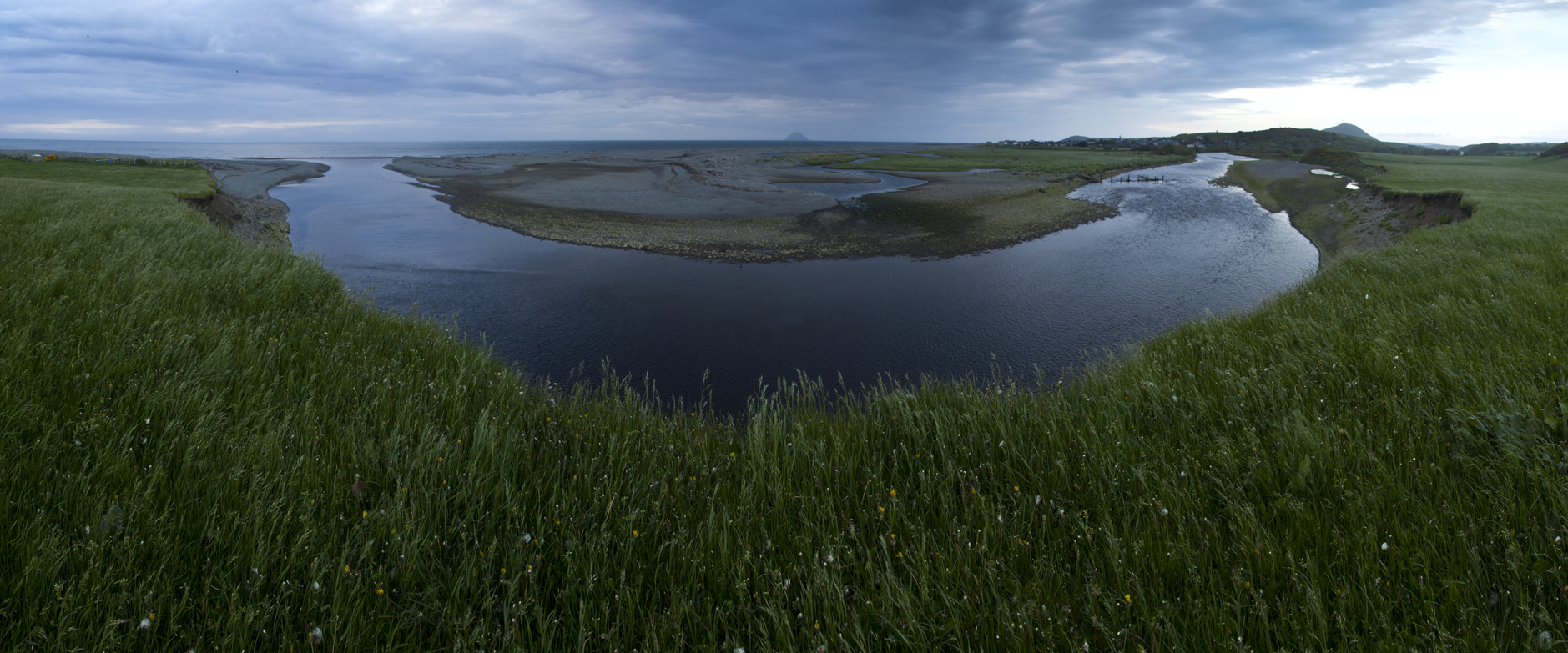 A wave which I had not seen lifted the boat and dumped it hard onto the shingle below, my paddle caught my skeg mechanism and with a mighty rip tore the wire clean out of the housing. Swearing loudly I quickly hauled the boat up the beach, the impact of the dump had not damaged anything else but had forced many pebbles into the skeg slot jamming it tightly shut. For the immediate moment however I was cold, tired and needed to rest. Under the setting sun I hauled the kit over a rise in the shingle and nestled into a grassy hollow.