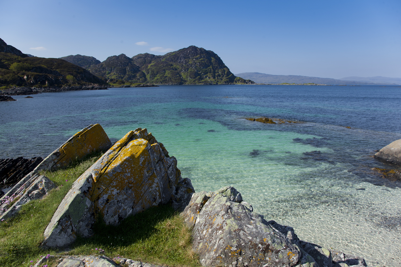 To the north the golden sands of Sanna bay were deceptively inviting, despite the sun the azure blue waters were surely still freezing cold.