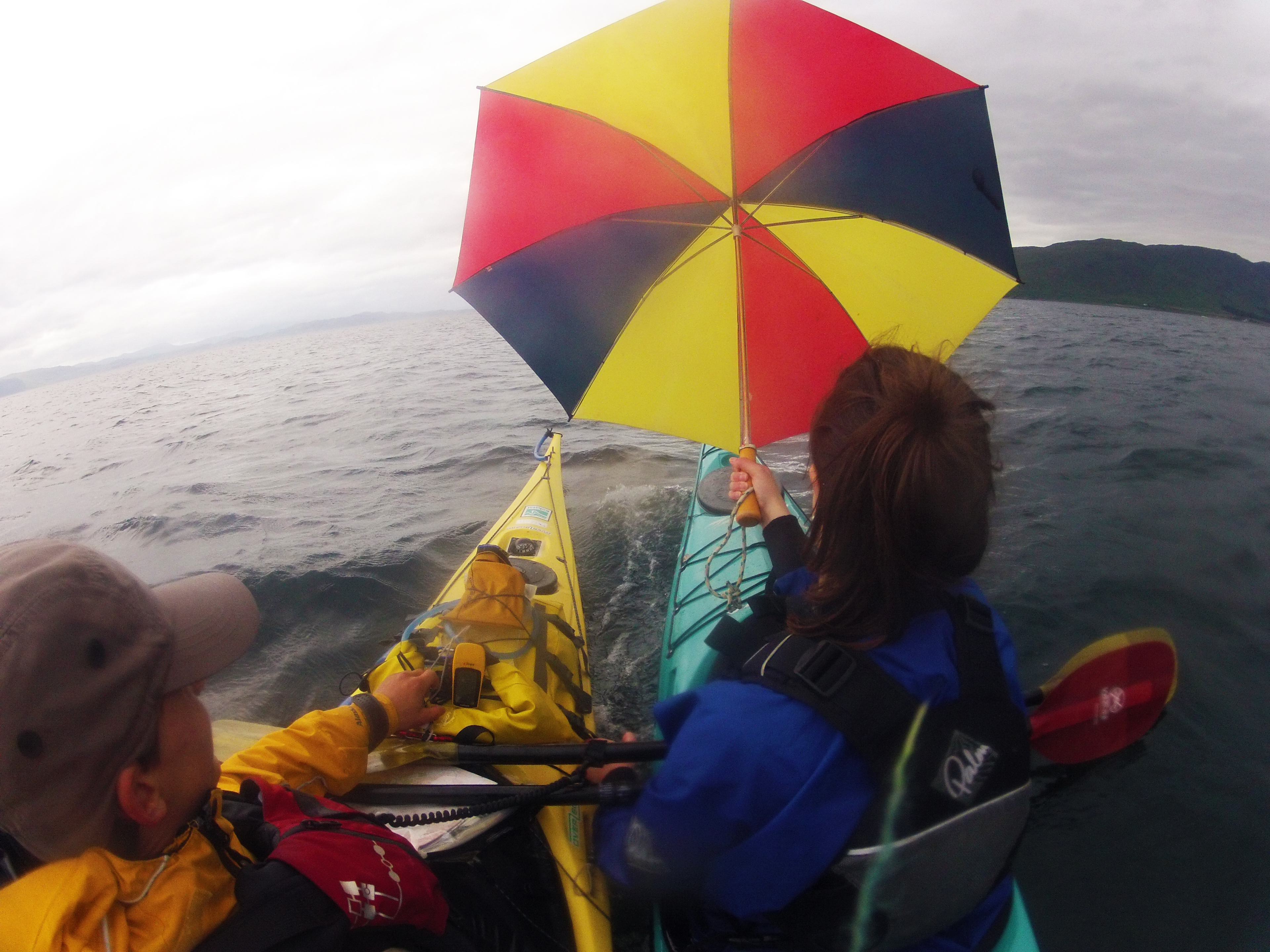 Rafting up with Tess we clipped together with a mini caribiner to form a stable raft. Upon departing Paul had left me with his late fathers golf umbrella…. With a thud and a whoosh I popped it open and lurched forward with a hearty tug…..”LETS SAIL!”