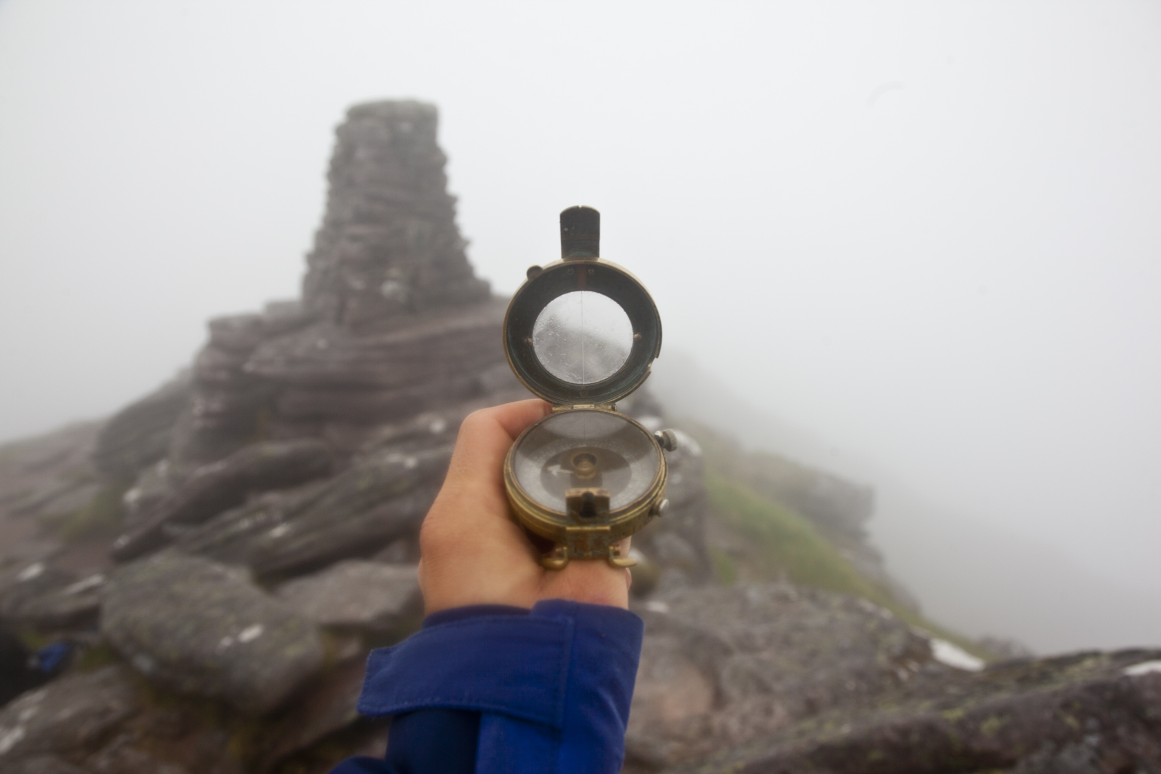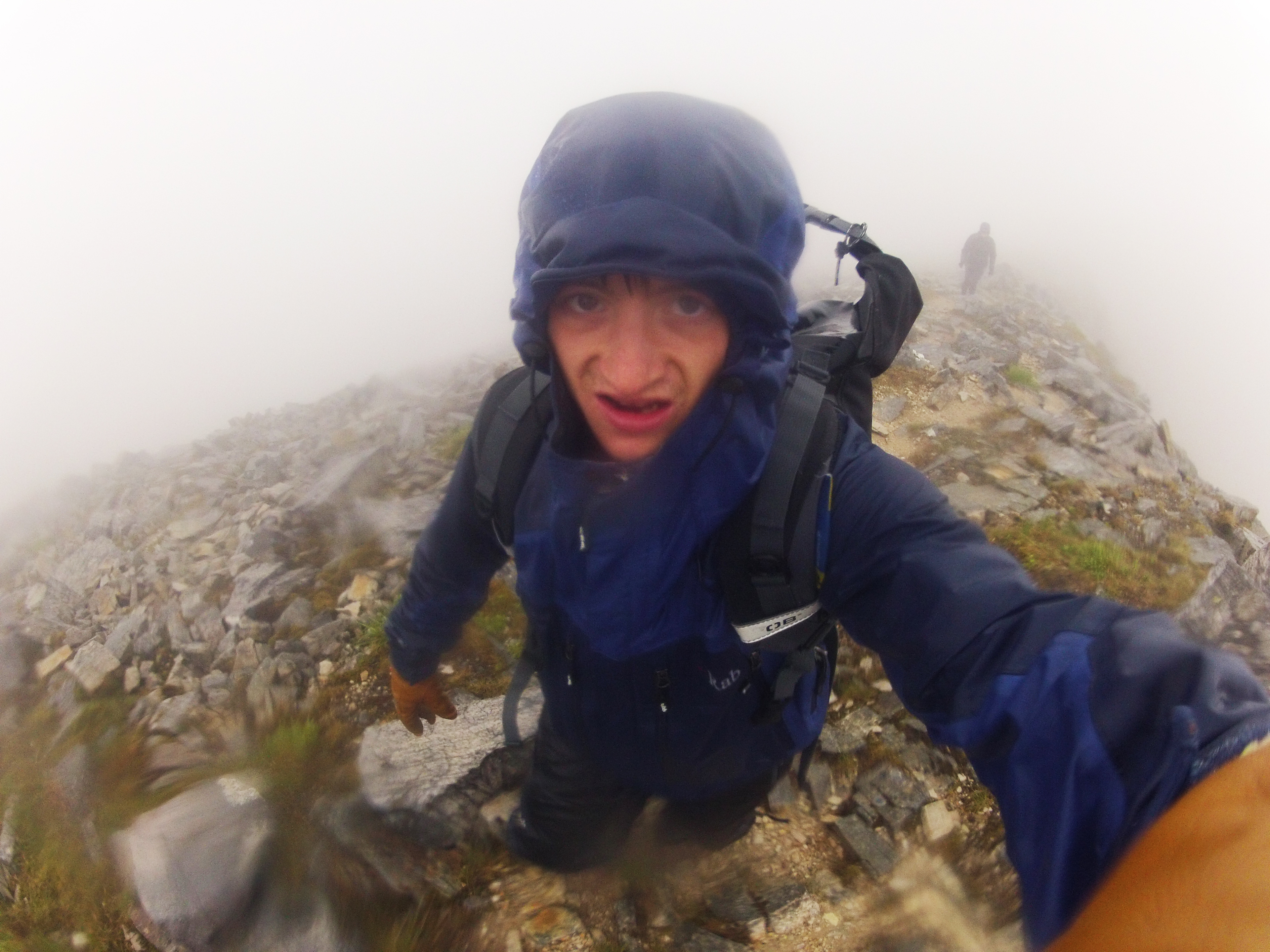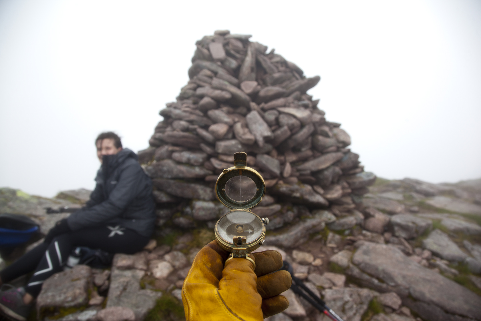 False summit after false summit loomed through the mist ahead, hiking under compass bearing and pacing we bent low with heads down against the relentless fury of the wind. Whipping up the cliff into our faces it whistled across the rocks and with a deafening roar clashed through the fabric of our jackets. This was the second time I had been approaching this summit, and the second time in gales and minimum visibility….thankfully this time there wasn’t any snow.
