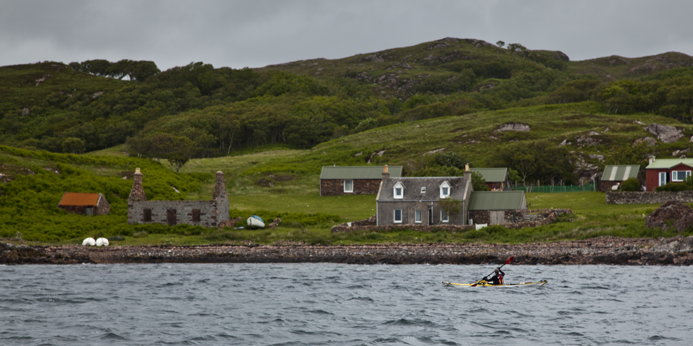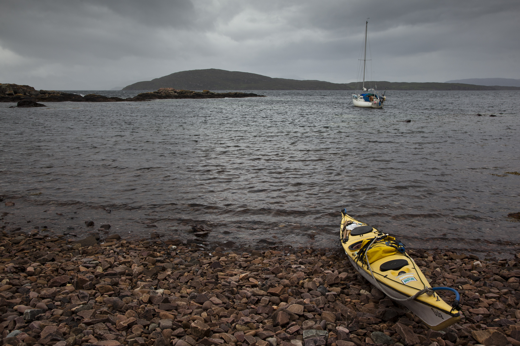 Thanking Beth profusely for hanging my overalls to dry I squeezed into the kayak with a teetering balancing act from yacht. Fuelled on a large fry up I was ready to go! I would race ahead of Mollymawk and meet them 10km north west at Uags bothy.