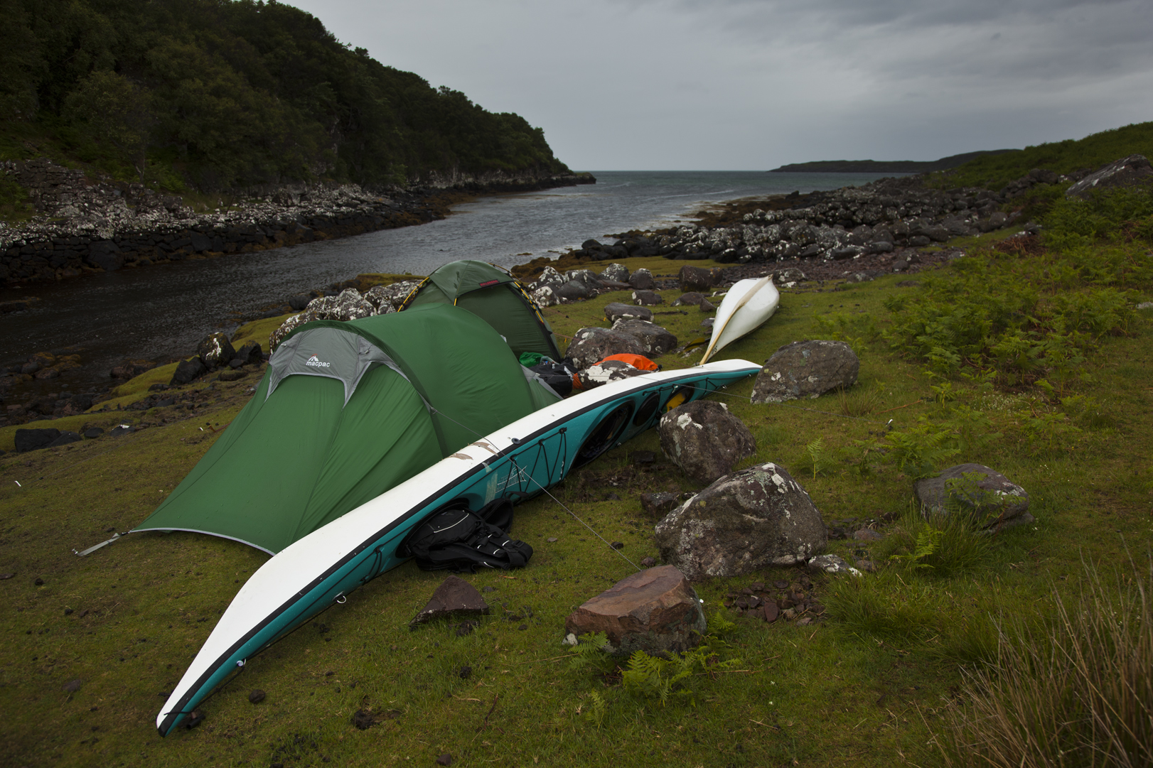 We had travelled 20km Tess was clearly exhausted, “Be aware!” She shouted “Grumpy Tess might arrive soon.” Thankfully she didn’t and after an hour of slow tired paddling we scraped our way onto the beach. A disused lay by next to a winding single track road was the only easy camp site, it wasn’t perfect but to weather a storm it would do just fine. Rigging up a washing line as Tess set the tent, with dinner over an open fire we settled in for a long stay.