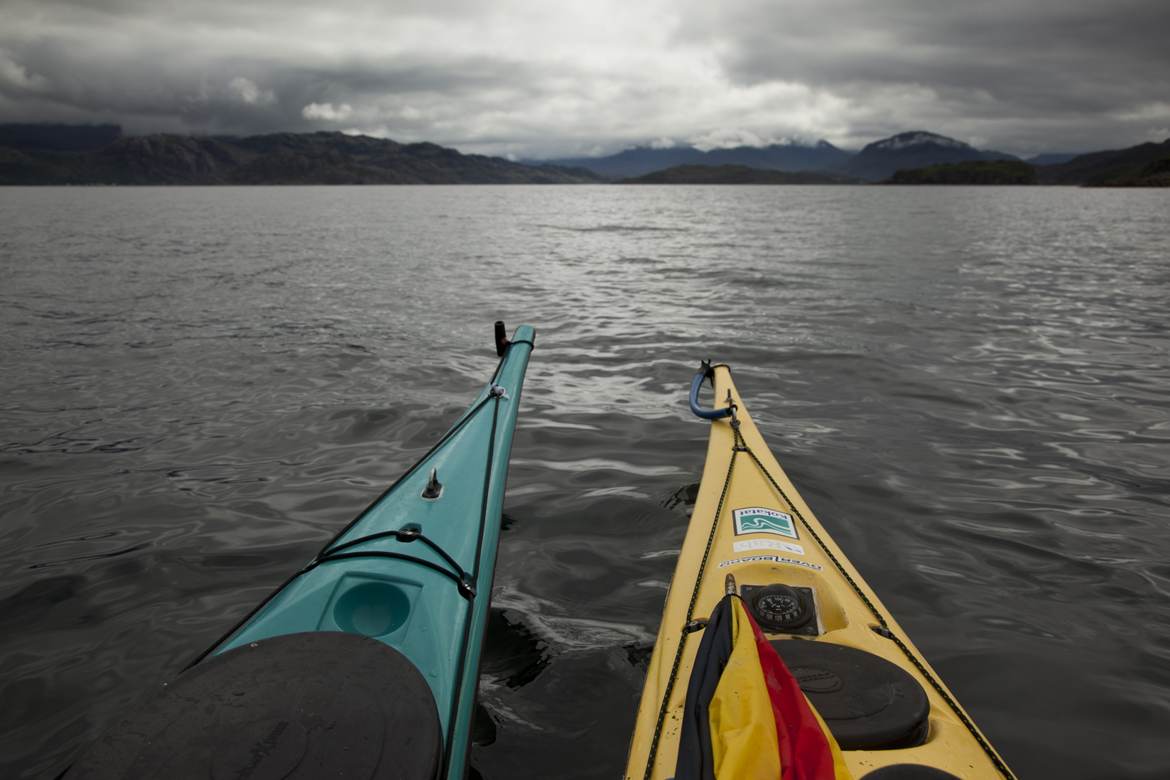 We were just 5km to our camp. The wind whistled violently around us and tall waves crashed behind our stern. Bracing hard as Tess continued paddling I held us in line, bouncing and crashing together I wondered how much more the little clip could take. With a loud ping and a jolt my question was answered….grabbing Tess’s deck to hold us together I looked forward for the broken join. Incredibly it held strong but a bolt had torn from my deck. Still watertight and now rolling in the breaking waves we carried on with the following wind, we were nearly there!