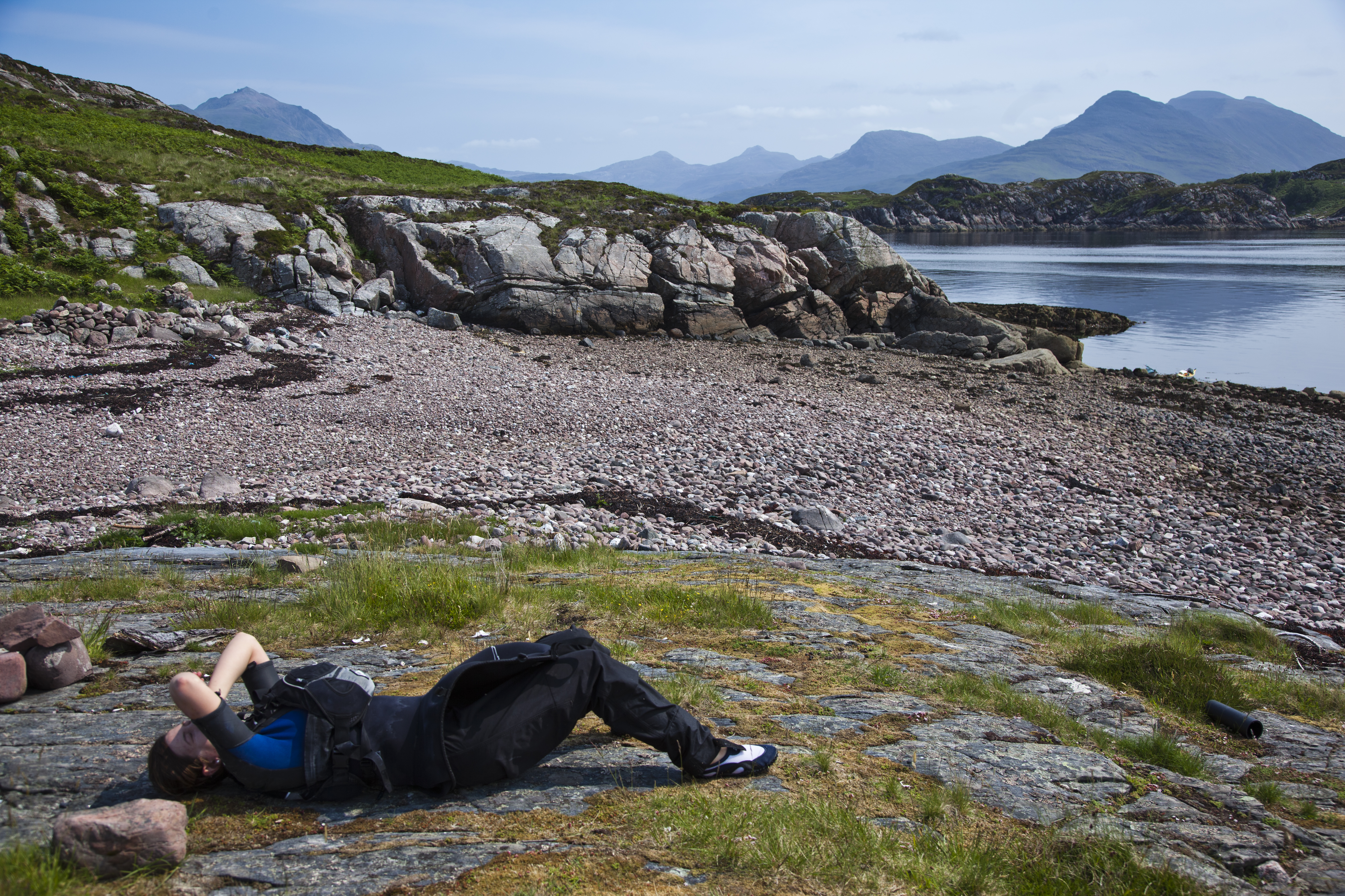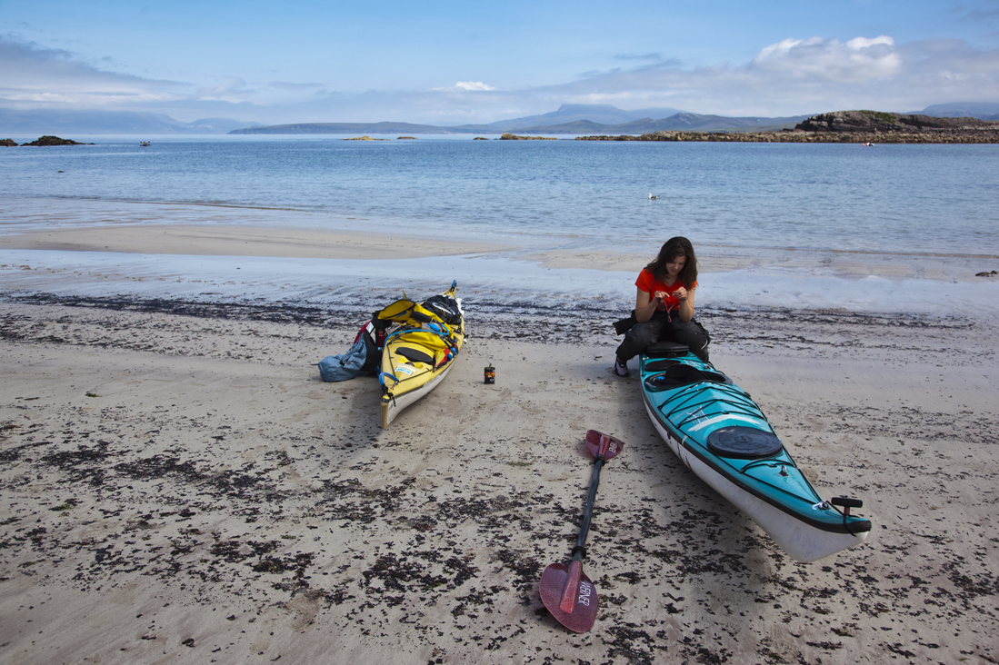 Briefly beaching at the head of Loch Torridon to enjoy the sun we shared another chocolate bar before continuing out west.