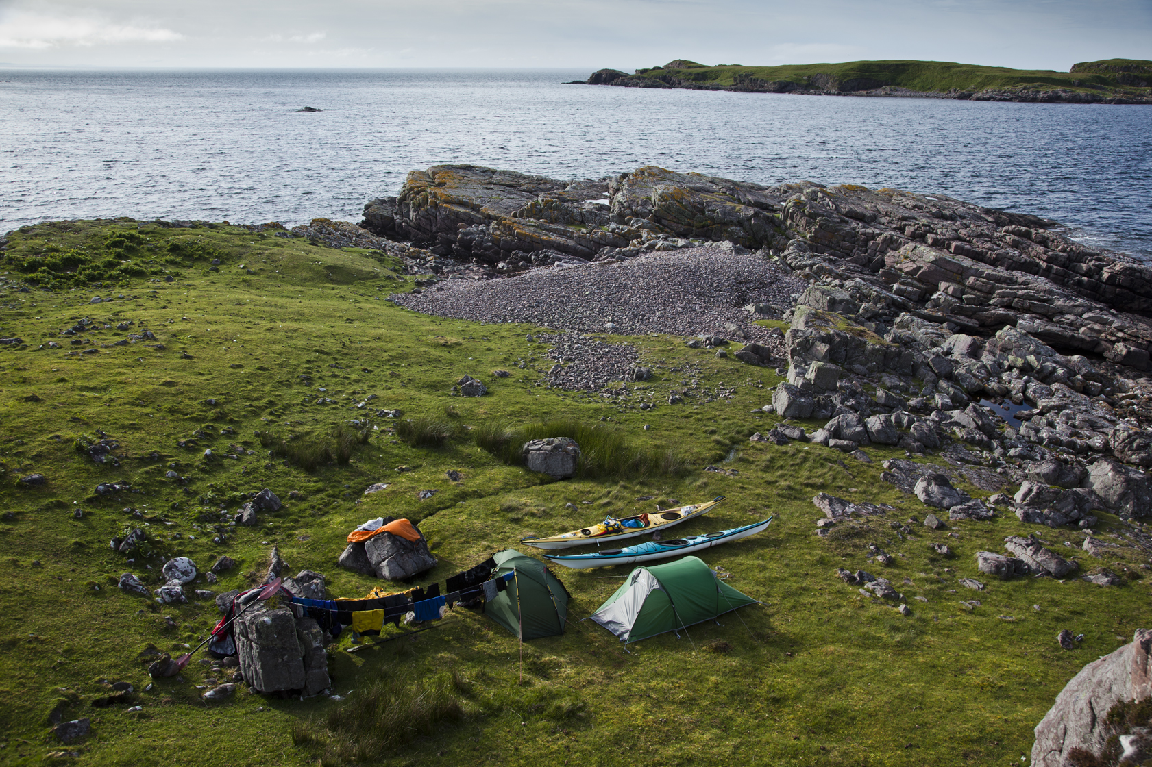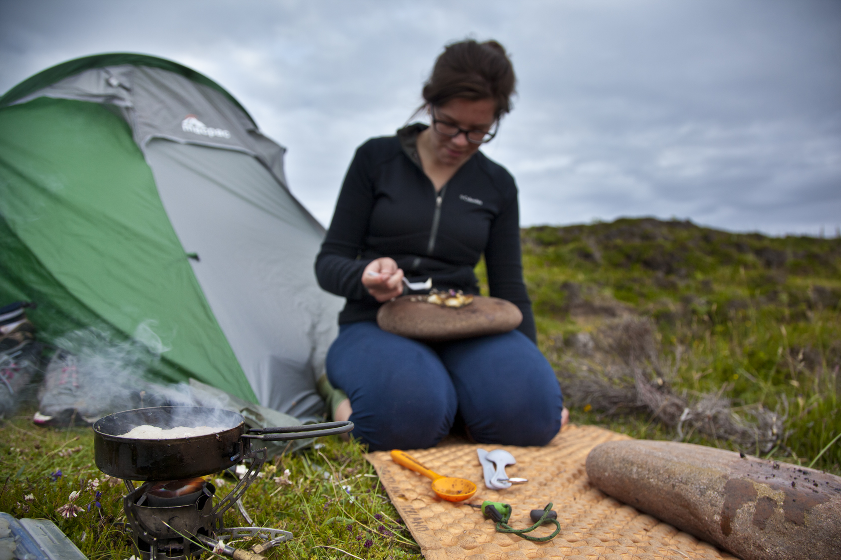 In the still twilight we beached at the northern bay of Red Point. Dragging the boats together up the sands and setting camp on an exposed plain to avoid the worst of the midges I set about preparing dinner!