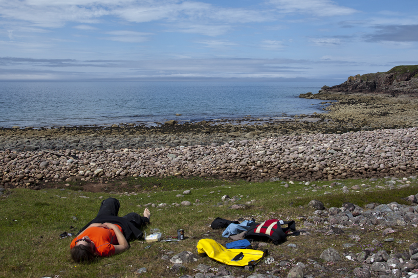 Smiling and laughing Beth, Tess, Joe and Paul arrived onshore in what seemed an overladen dingy. Having grown up in Adelaide Australia Tess was still inspired by the sheer abundance of green. They all wandered around the bay and into the bothy. Again I would leave them behind in the kayak, with white horses bouncing on the far shore they wouldn’t take long to catch up.