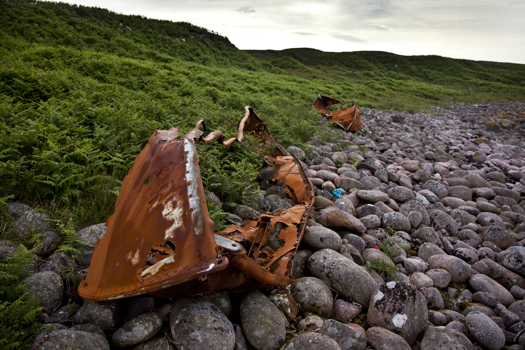 Cut free from fishing line and a rusting creel the lamb bounced with glee toward the nearest grass and set about devouring it with ecstasy, it clearly had been trapped on the rocks for days. Noticing a series of rusting lifeboats we wondered where they had come from and what boat.