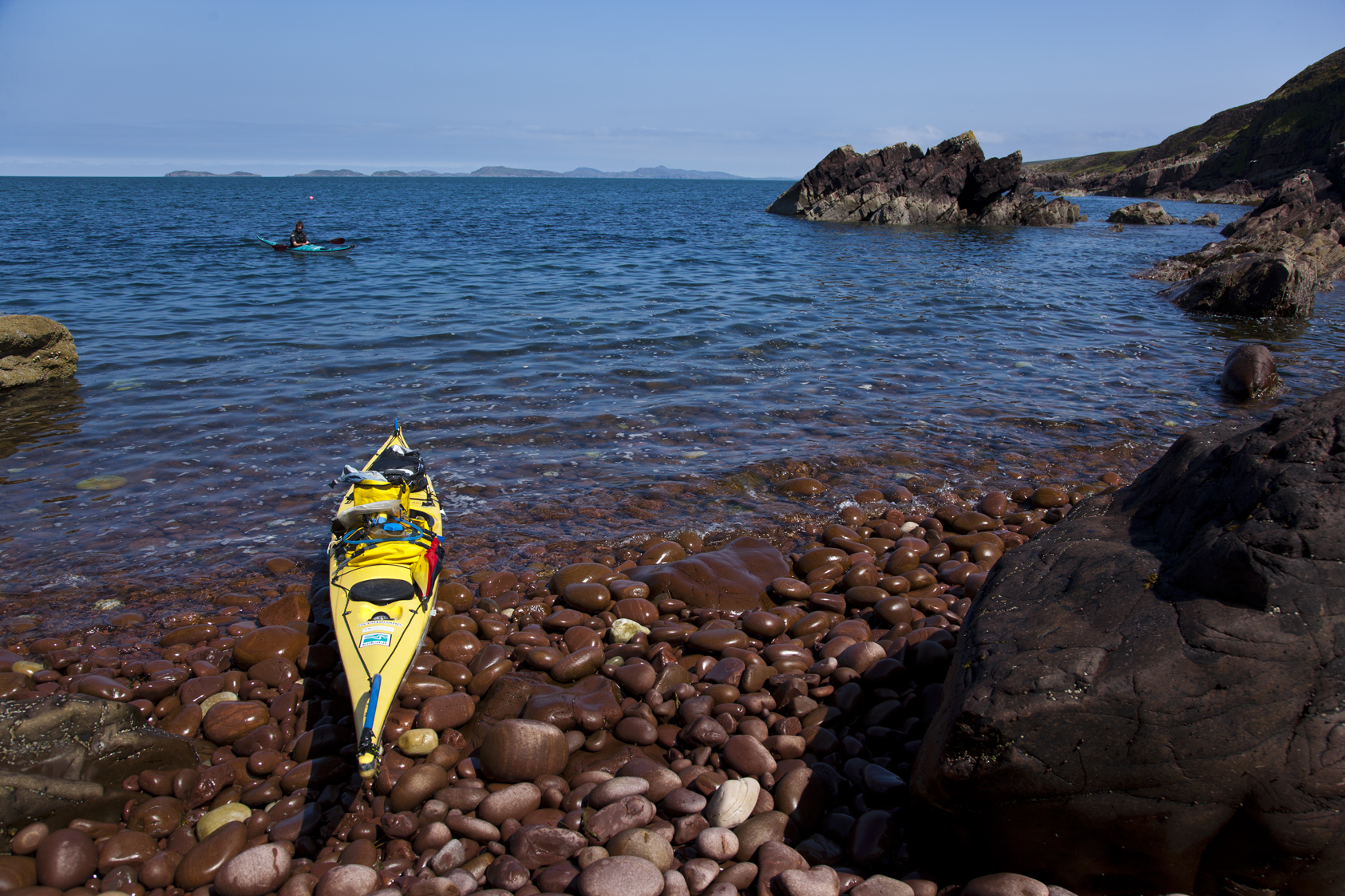Scraping back out to sea we paddled the last 7km to the end of the bay, side by side we chatted and drifted apart from time to time to enjoy both company and solitude along the beautiful coast. Birds and porpoise were the only breaks in the otherwise flat calm sea.