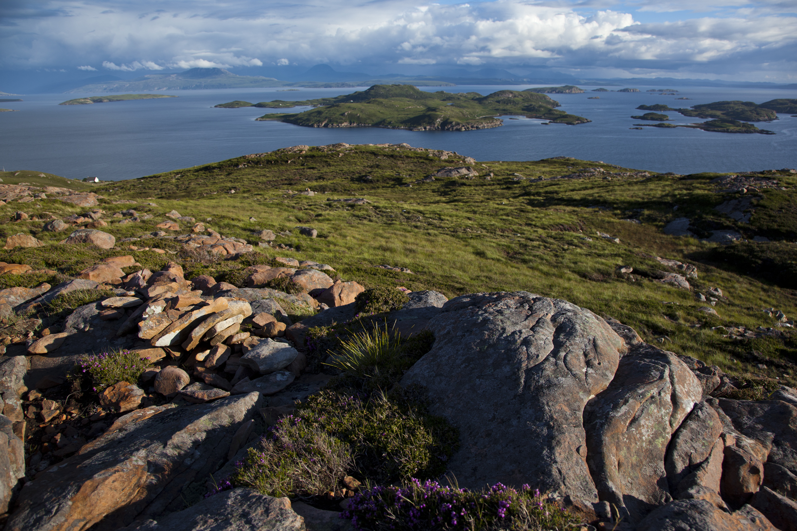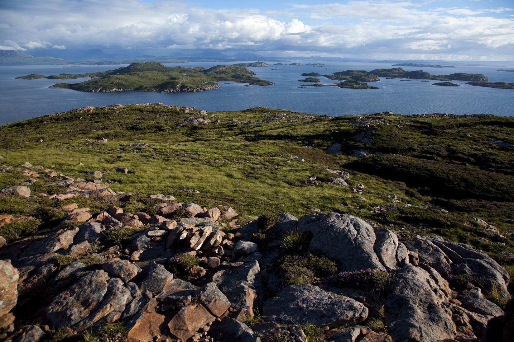Unable to spot any rivers or streams nearby I wandered up a nearby hill to scout for a source. I did not find any on shore but was instead rewarded with a tremendous sunset panorama across Annat bay and into Loch Broom.