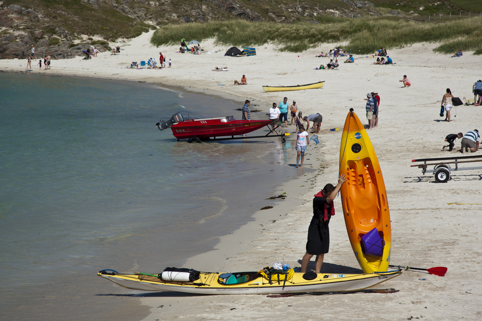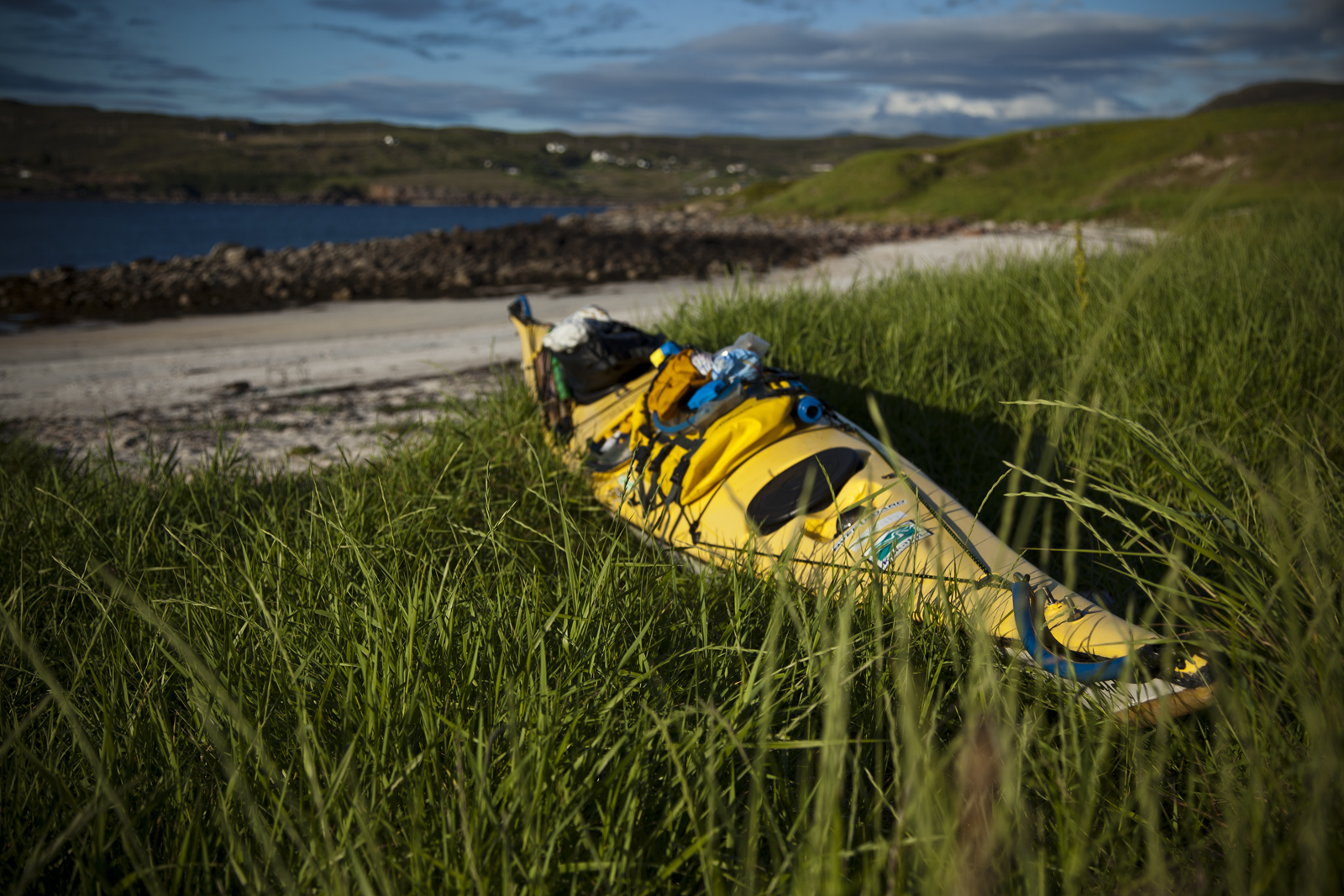 Infront of a group of sunbathing onlookers I wandered up the sand and spread out on the rocks to sunbathe. Despite the busy bustle of tourists the beach was still as perfect and beautiful as I remembered, many fantastic memories were washed into my past from the sand and Machair here. From scampering barefoot around rock-pools at the edges looking for crabs as a toddler to chaotic beer fuelled teenage beach parties, never once had I dreamt that I would arrive back at the familiar shore by kayak.
