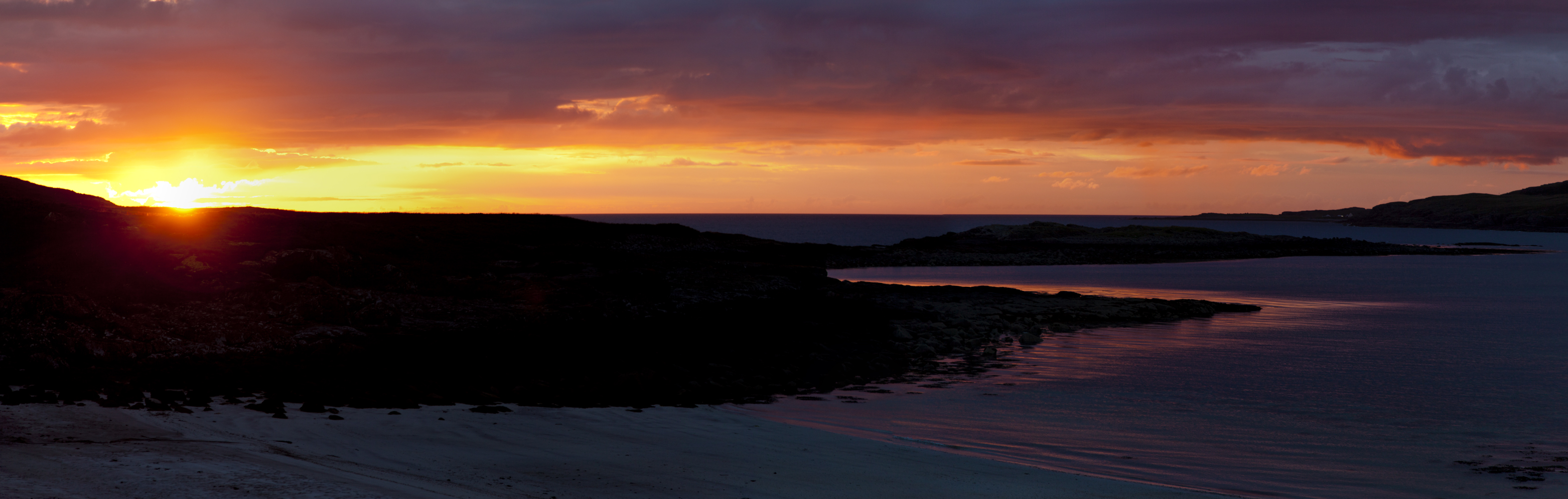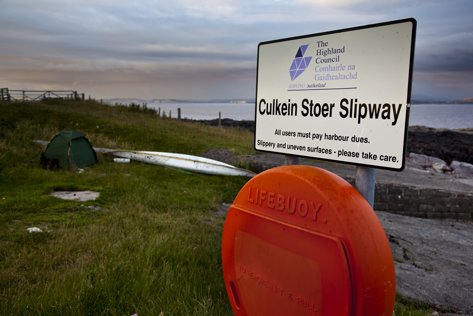 Passing the Old Man of Stoer sea stack and crossing a final open stretch of water I crossed the cliffs and returned to rounded coastline, nosing the boat into a small harbour at Culkein I stepped out onto the shore and shin deep into sulphurous grey mud. The sun had long since set with its final symphony of red and violet blue cast upon the approaching storm front from the north. Now I was cold, it was growing dark and I needed to camp.