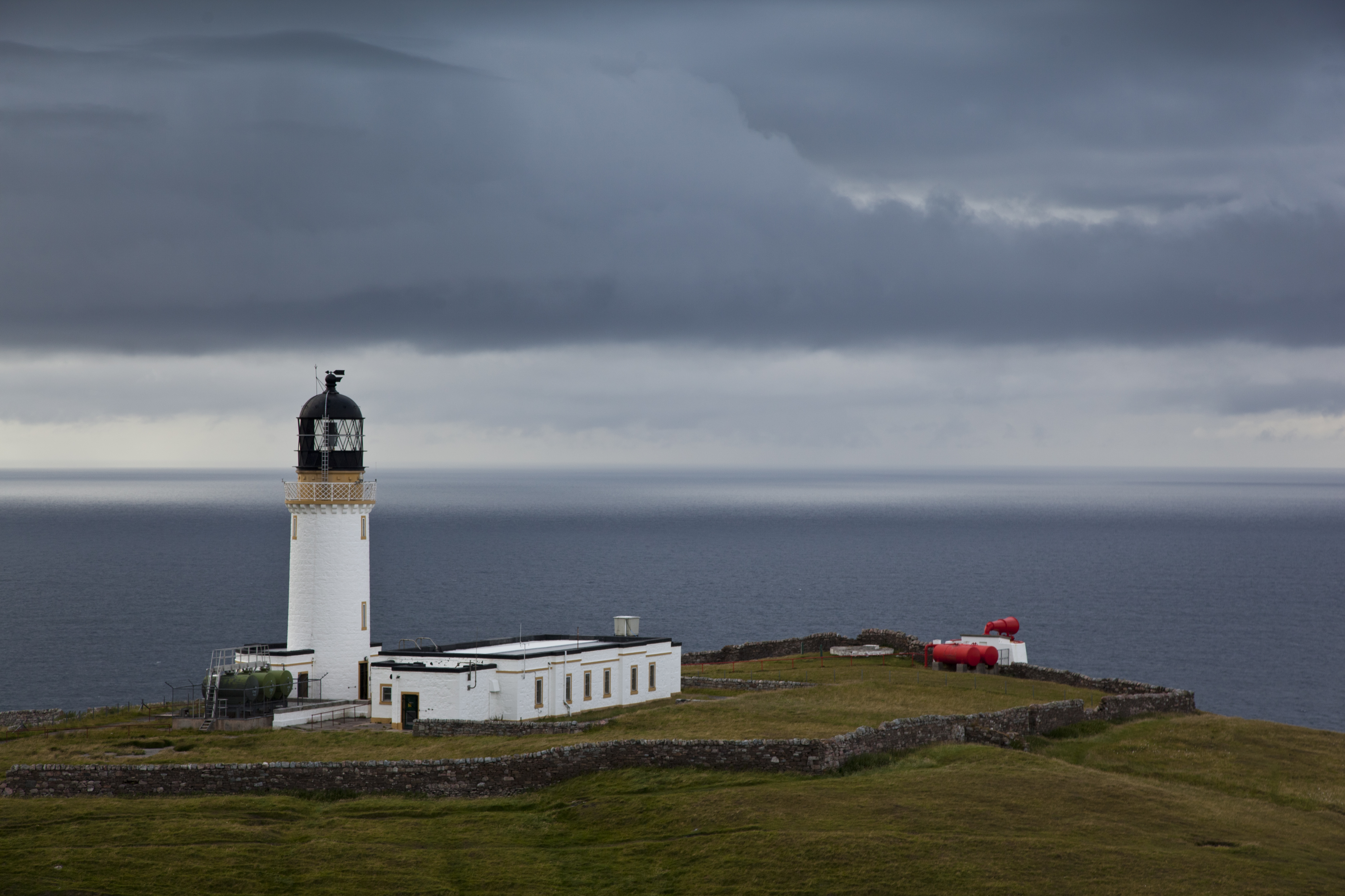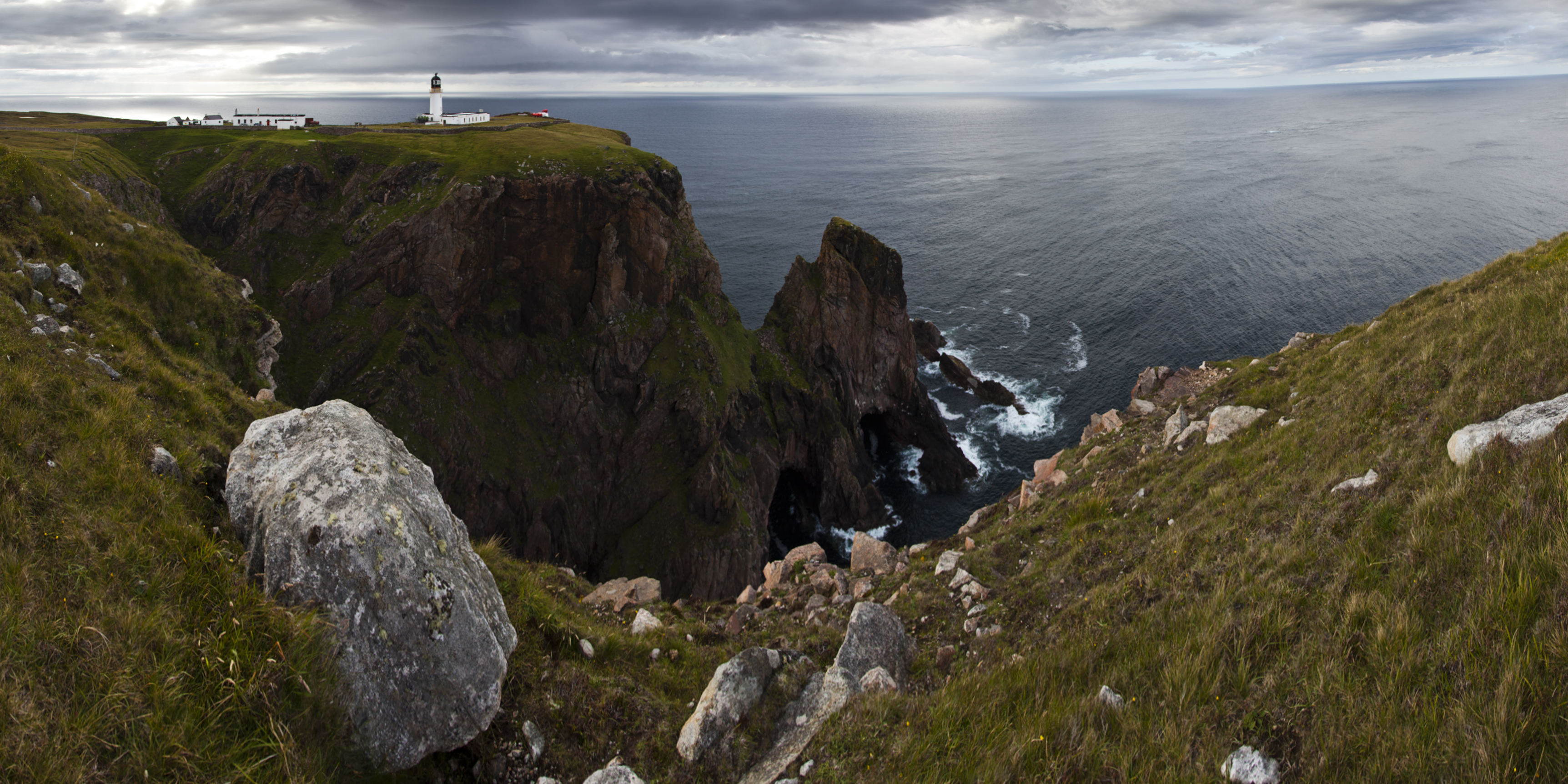 Huge archways and caves gaped open from the marbled colours in the rock, ahead three razor sharp pinnacles stood defiantly out to the northern ocean. Here was a shore which had seen the worst weather imaginable and become moulded by its fury. Far above rising from flocks of Fulmars and kittiwake which filled the air the tip of the lighthouse itself stood over my boat. The turning point onto the next “stage” had arrived at last!
