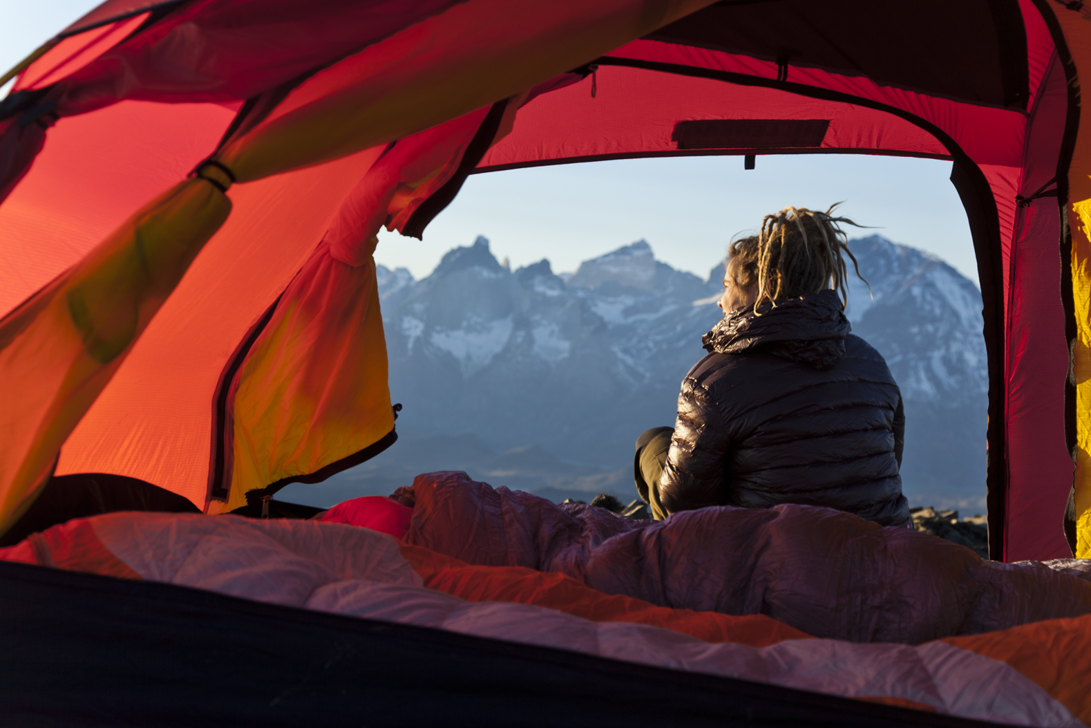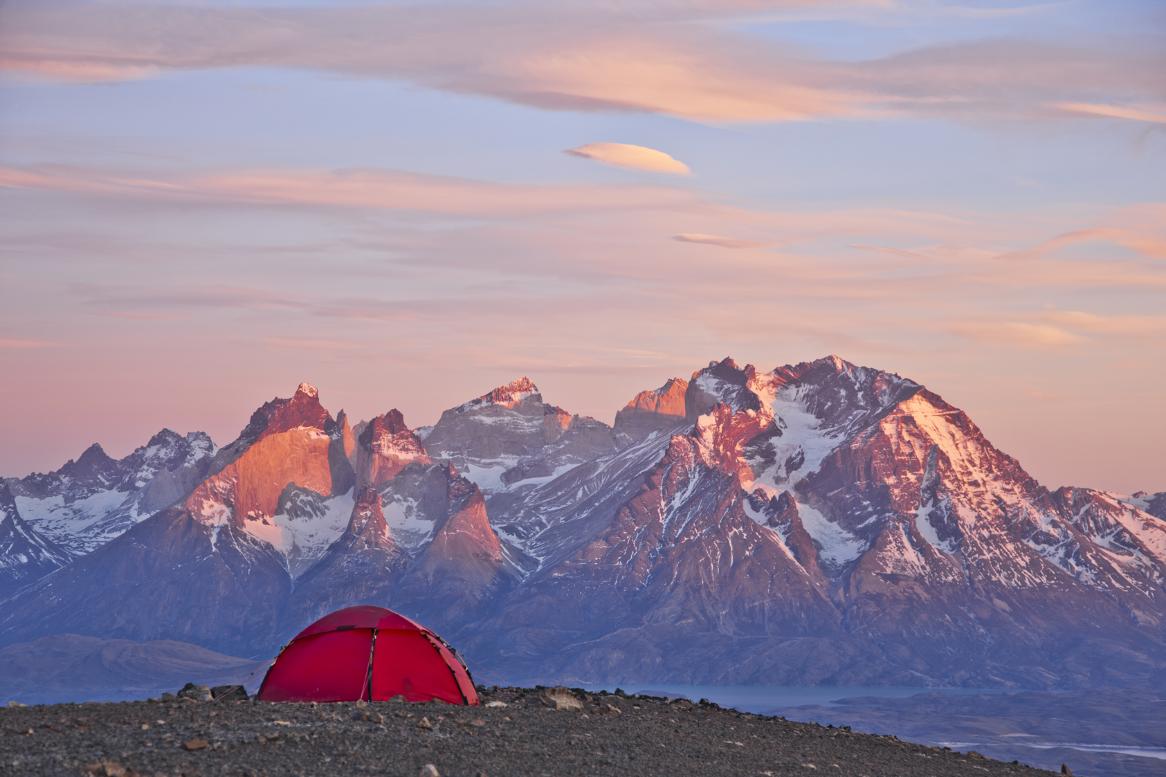 Seldom have I had a day in the wilderness I would describe as perfect. Just 3 days into another season in Patagonia and I was in paradise. A wilderness from heaven carved by the weather from hell on pristine display without cloud nor wind to challenge the spectacle. I perhaps went a little ‘tent photo’ happy but was ecstatic to pitch so easily in somewhere so difficult under normal conditions. Ruth and I settled in for a calm evening watching the sunset.