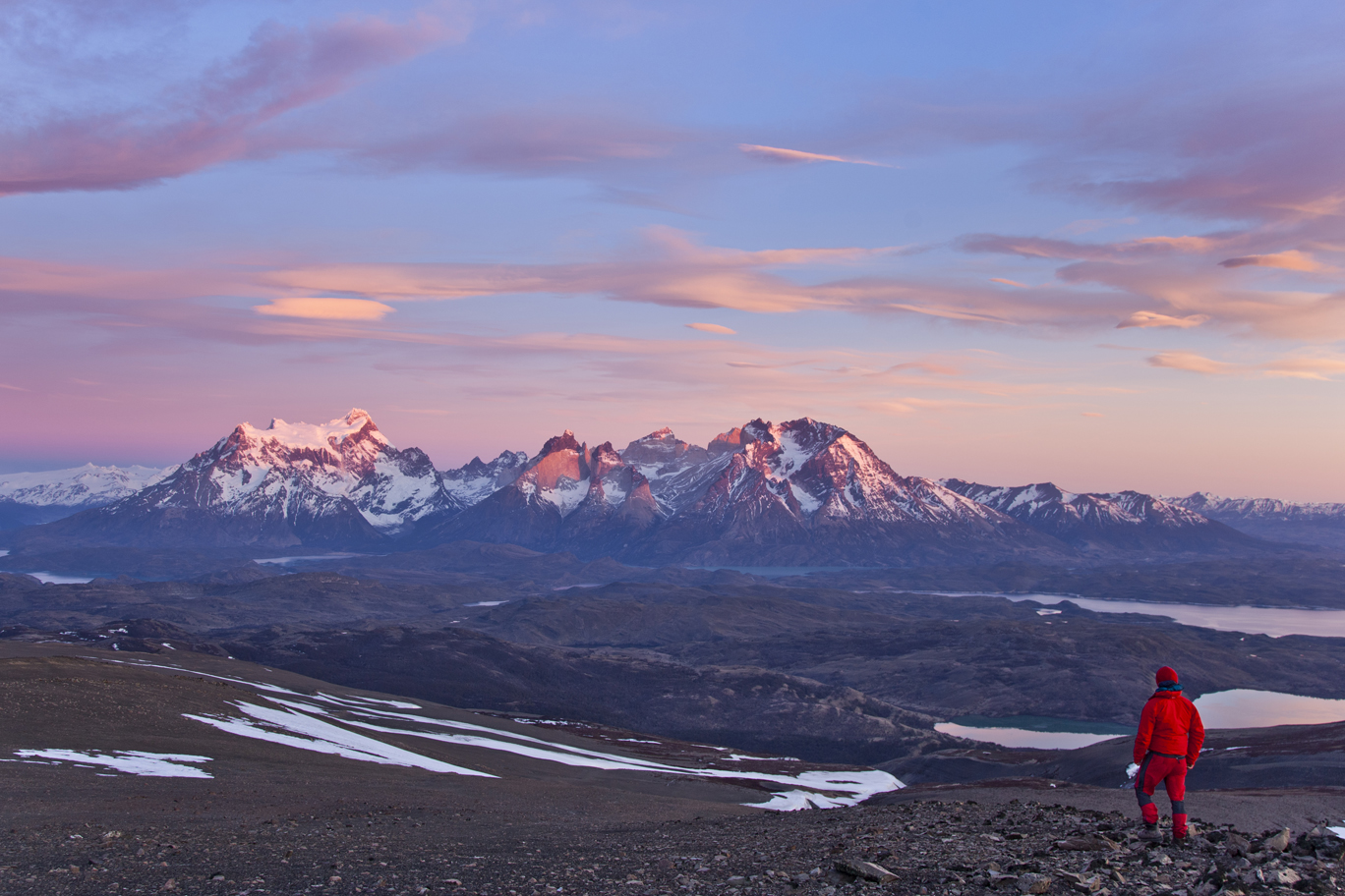 To my side my new flatmate and good friend Ruth walked seemingly effortlessly at my side. Dropped from a bus on a remote bridge we had set our own trail direct for a steep clamber in an attempt to camp on the top of a remote summit. We hoped to escape the crowded trails of the Torres Del Paine, to capture a view of the entire range and to trace new steps where we had not been before. So far our voyage of discovery had been hot, arduous and sweaty. I thought Patagonia was a cold region.
