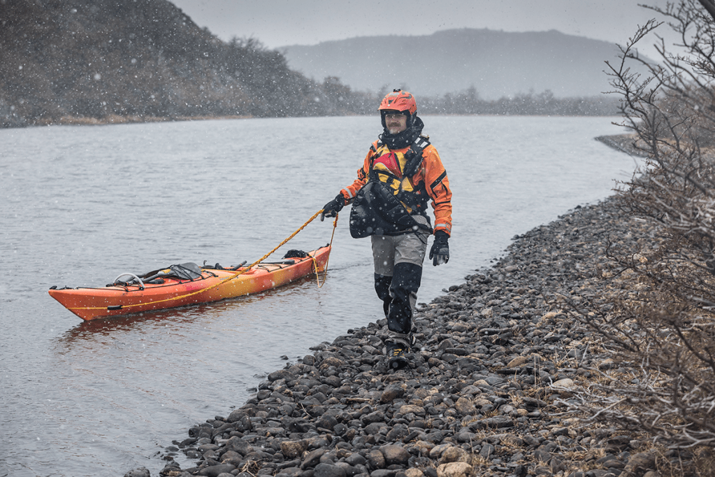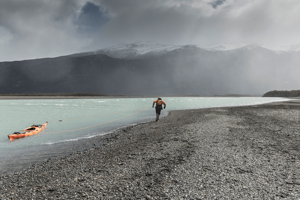 As the snow stung my face, sticking into the wrinkles of my creased gurn against the wind, I looked back behind my numb hands as I lined my kayak downstream along the shore. Even with flow on our side it was too windy to paddle and huge ‘Rafagas’ (Spindrift) burst off the surface like a violently steaming pot. I felt an odd sense of pride looking back at Jen. The conditions were much the same to my first time on the Serrano and I remembered how I felt the first time, frustrated, tired, nervous yet oddly enthralled. I could see it in Jen as she pushed past frustration when the wind pushed her boat ashore, she still carried on. I remember the wind getting my boat stuck like that and then huddling in a bush, waiting for the gusts to pass. I remember feeling panic, Id just kayaked around Scotland, but on my first outing to become a guide I was already stuck and scared. I remember thinking ‘Holy Shit’ I’m out of my depth. Jen hasn’t kayaked around Scotland yet, but here she was coping just as well as I had on my first time, after four years I had become the mentor and now Jen was the learning student of the Serrano.