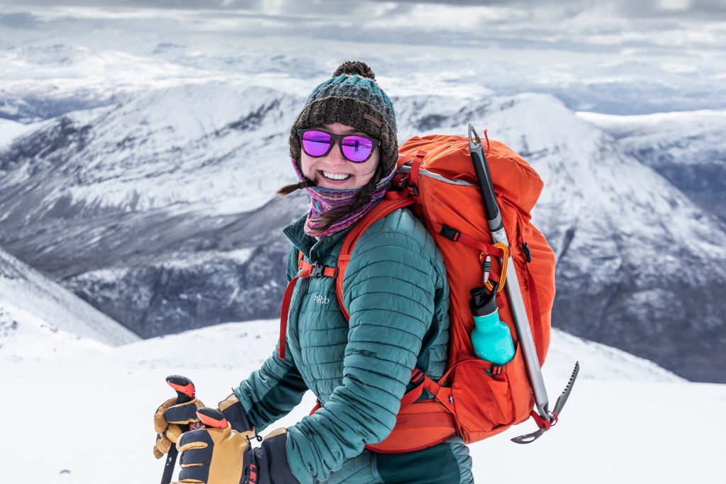 Foinaven, started with a short 2km wander through the peat bogs before we joined the western ridge to ascend to the summit. Initially, Jen and I were dubious we had made the right choice, it was currently the only peak on the horizon capped in cloud, we put our trust in the forecast that it would clear. Before long we were treading steps through the fresh dusting of lambing snow with the rocky summit in sight. Arriving on Ceann Garbh (western most sub-peak), the ridge drops away to the east with spectacular vistas looking ahead to Ben Hope, Scotland’s most northerly munro. To our south we could see as far the Isle of Skye and our north the lonely island of North Rona far out at sea. The cloud had played ball, and left.